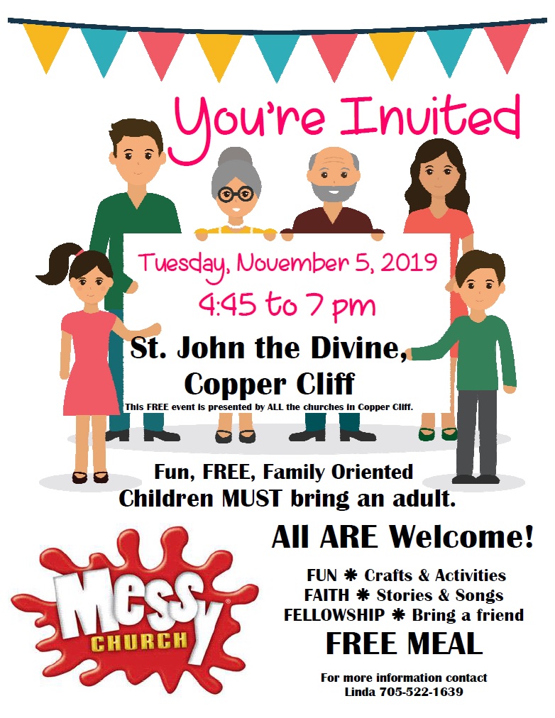 Copper Cliff Messy Church Messy Church Oct 262019 Share this: Share on Facebook (Opens in new window) Facebook More Print (Opens in new window) Print Share on X (Opens in new window) X Email a link to a friend (Opens in new window) Email Sorry, the comment form is closed at this time.